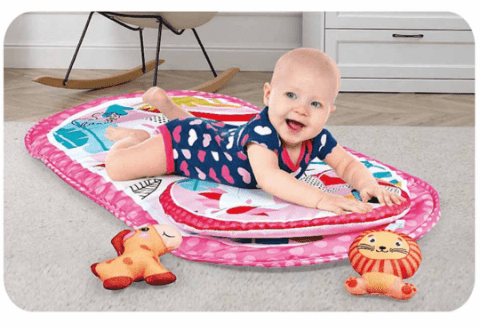 Arcul suspendat cu jucării moi stimulează simțurile și coordonarea bebelușului încă din primele luni.