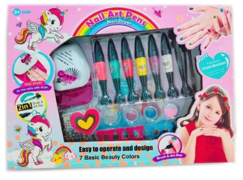 Pachetul include un uscător de unghii practic, pensule 2 în 1 pentru desen și aplicare, precum și o gamă vibrantă de culori.