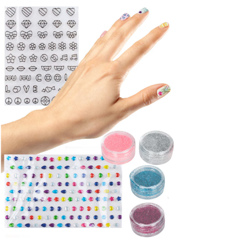 Glitterul strălucitor și stickerele incluse oferă posibilitatea de a personaliza fiecare design.