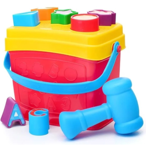Cu ajutorul ciocănelului, cei mici pot lovi piesele pentru a le introduce în orificiile corespunzătoare, dezvoltând coordonarea mână-ochi.