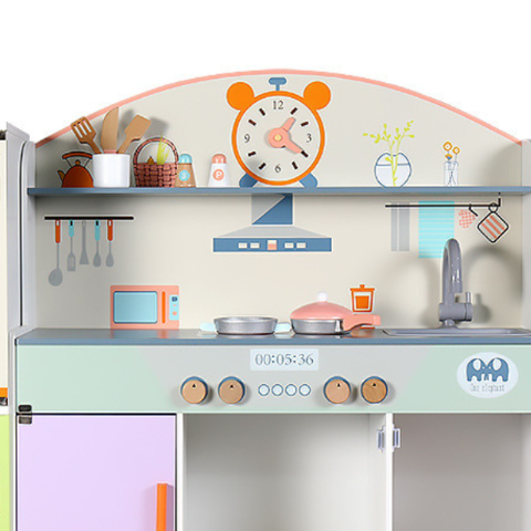 Această bucătărie de jucărie XXL este un adevărat vis pentru micii pasionați de gătit, având un design modern și culori pastelate care atrag imediat atenția.