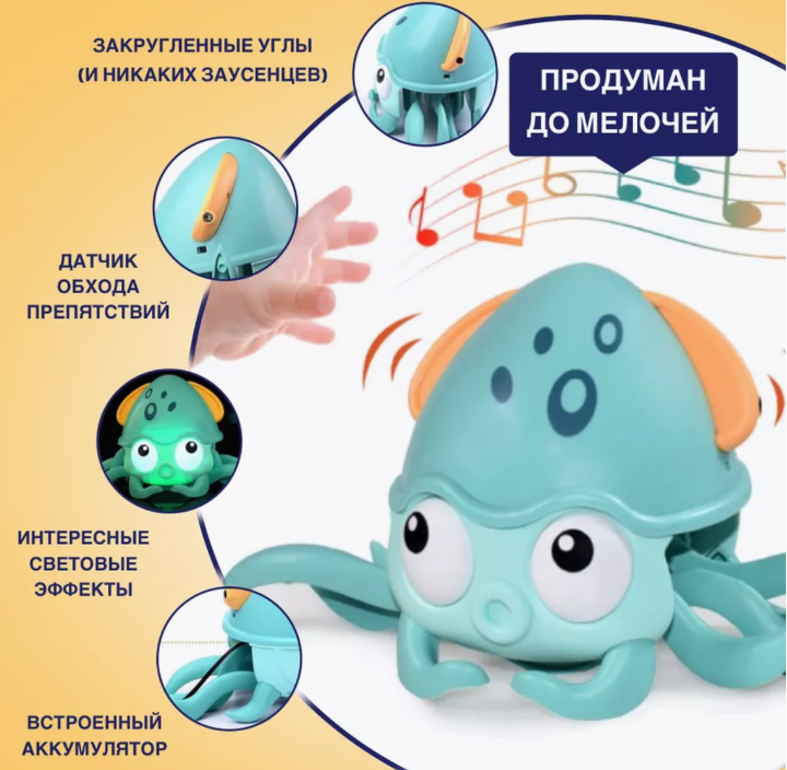 Cu tentacule mobile și lumini strălucitoare, această jucărie îi provoacă pe copii să o urmărească și să se târască după ea, stimulând mișcarea și coordonarea.