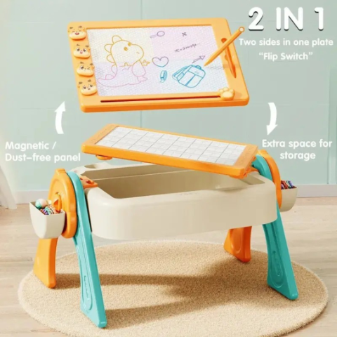 Această măsuță interactivă transformă desenul într-o aventură captivantă, oferindu-le copiilor libertatea de a crea fără limite.