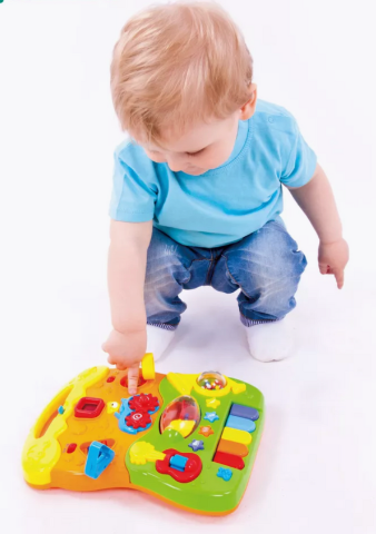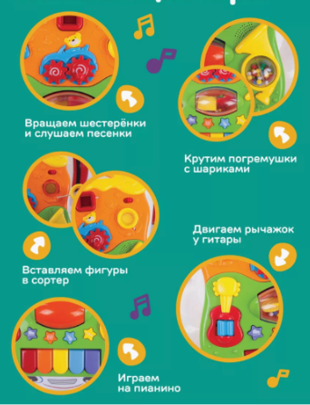 Jucăria îi ajută pe cei mici să-și dezvolte motricitatea fină, coordonarea și simțurile, în timp ce descoperă sunete, forme și culori.
