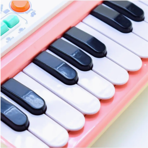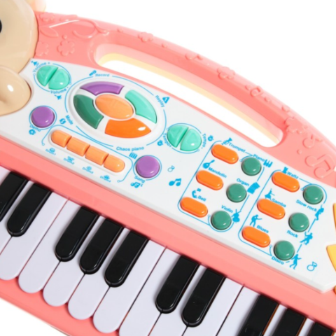Cu 24 de clape și diverse funcții muzicale, jucăria oferă o experiență completă, permițând copilului să exploreze sunete și ritmuri variate.