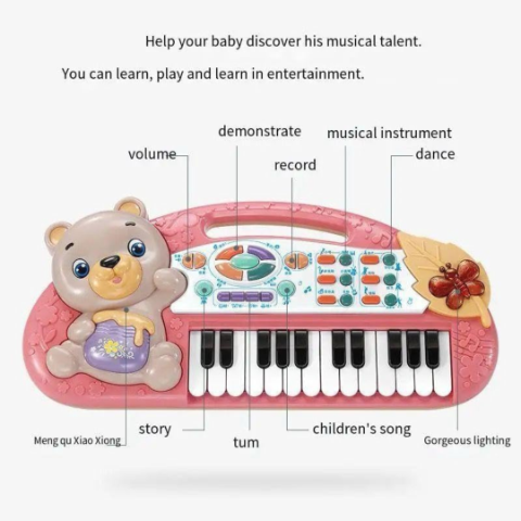 Acest pian colorat și atractiv este însoțit de un ursuleț simpatic care îi va captiva pe cei mici.