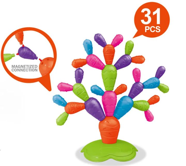 Acest set de construit cactus magnetic oferă copiilor o activitate captivantă de asamblare cu multiple variante de design.