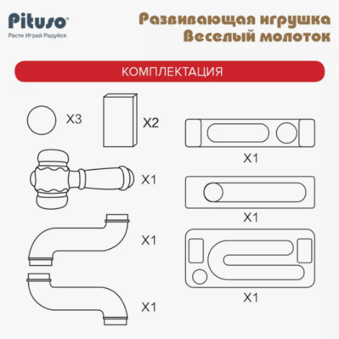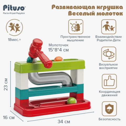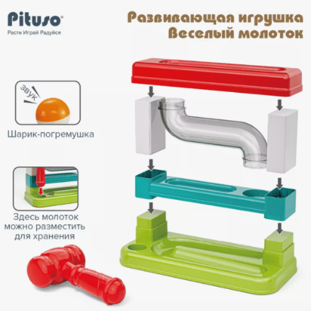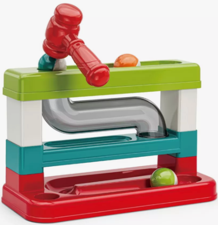 Acesta conține un ciocan viu colorat și trei bile mari ce pot fi bătute prin trasee amuzante.