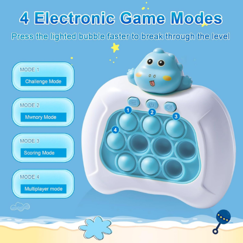Lumina LED integrată adaugă un element vizual captivant, iar butoanele tactile fac jocul intuitiv și plăcut.
