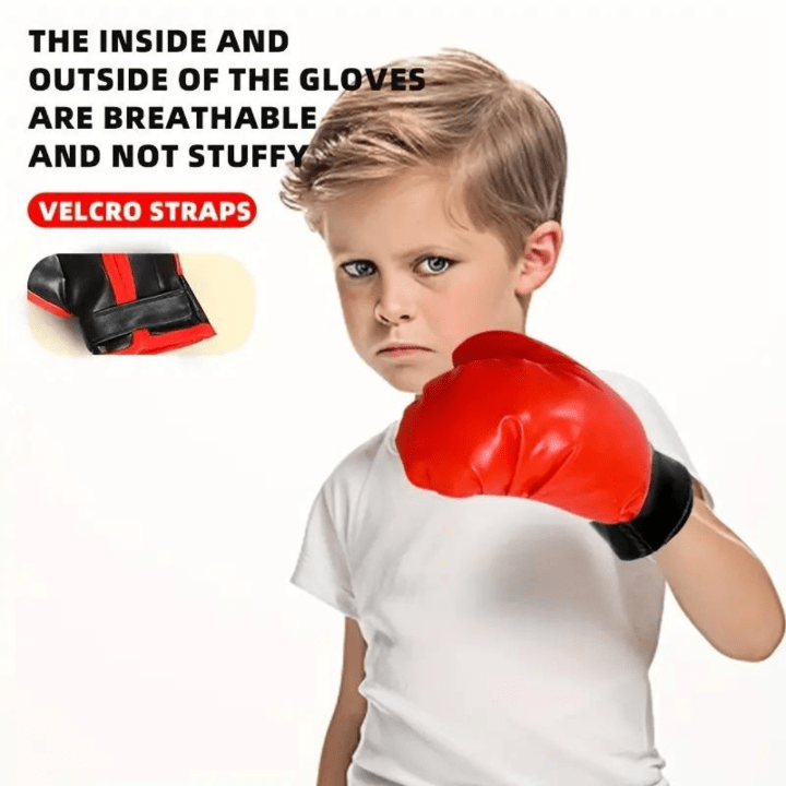 Setul de box pentru copii include un sac de box rezistent și mănuși confortabile, special create pentru micii campioni.