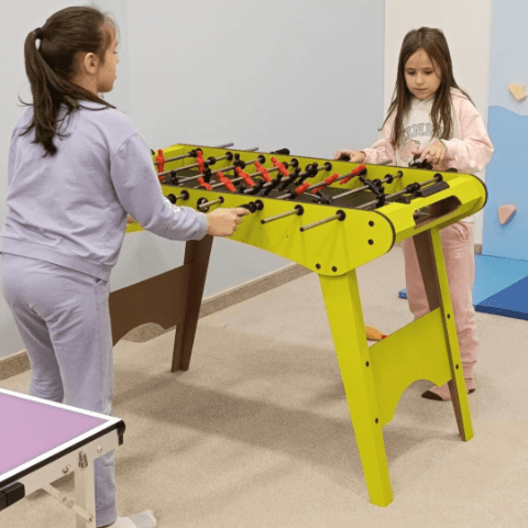 Această masă de fotbal cu design verde vibrant aduce bucurie și competiție în orice casă sau spațiu de joacă, fiind perfectă pentru ore întregi de distracție în familie.