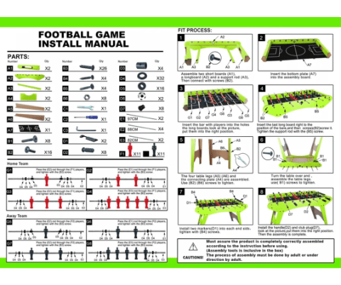 Fiecare jucător manevrează rânduri de fotbaliști roșii și negri, montate pe tije metalice cu mâner ergonomic, pentru control maxim.