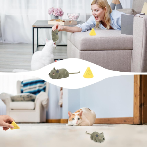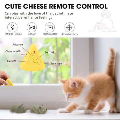 Acest șoricel simpatic și realist este echipat cu o telecomandă în formă de brânză, oferind ore de distracție atât pentru pisici, cât și pentru copii.