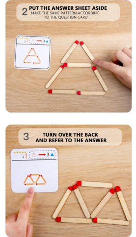 Copiii trebuie să urmeze instrucțiunile și să reproducă diferite modele folosind bețișoarele, dezvoltând astfel abilități precum coordonarea mână-ochi și gândirea spațială.