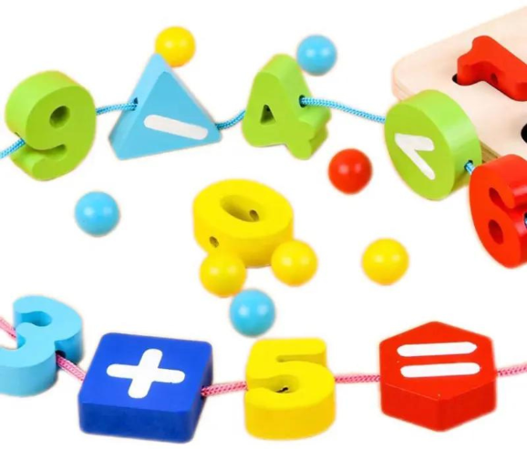 Acesta include numere de la 0 la 9, forme geometrice și bile colorate pe care copiii le pot sorta folosind bețișoare de coordonare.