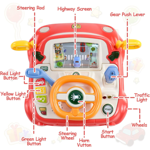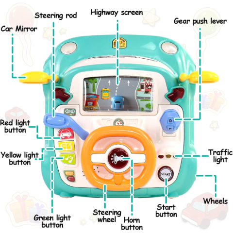 Cu acest volan interactiv, copilul tău se transformă într-un mic șofer, explorând lumea conducerii printr-un panou realist, plin de detalii captivante.