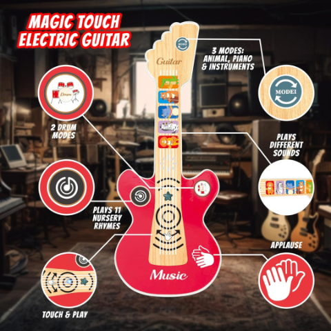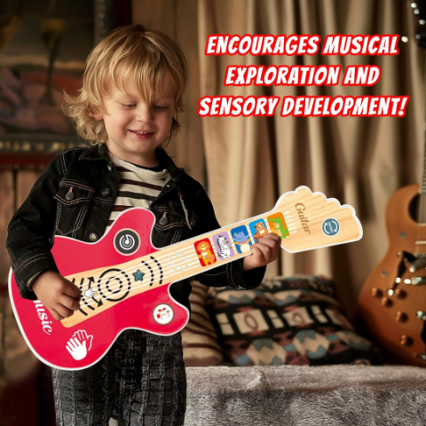 Cu funcții sonore de aplauze și ritmuri variate, această chitară este perfectă pentru încurajarea creativității.