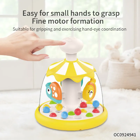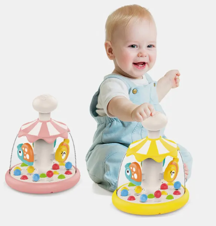 Acest carusel rotativ captivant este conceput special pentru a atrage atenția celor mici, oferindu-le o experiență de joacă plină de culoare și mișcare.