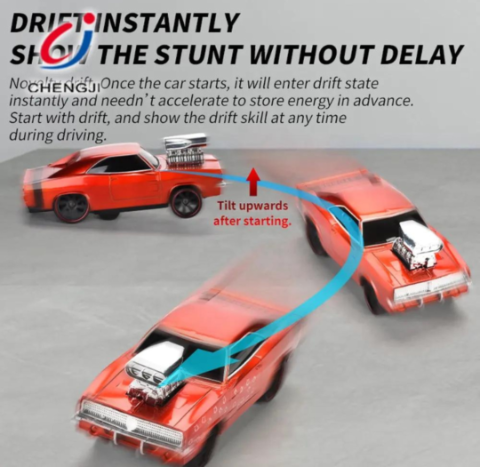 Mașina poate executa cascadorii instantanee la apăsarea unui buton, iar efectele de lumină și sunet adaugă un plus de realism în fiecare cursă.