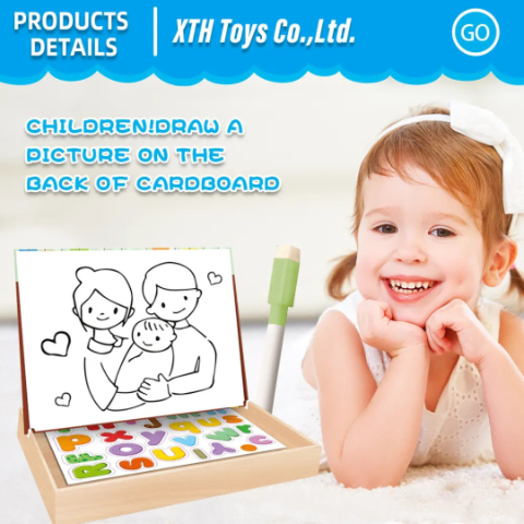 Pe partea opusă, tabla albă le permite să-și exprime creativitatea desenând sau scriind cu markerul special inclus.