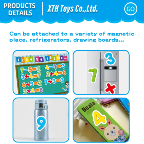Pe o parte, copiii pot rezolva exerciții simple și avansa spre ecuații mai complexe folosind cifre și semne magnetice viu colorate.