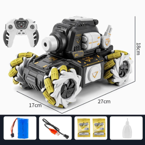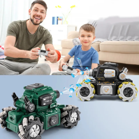 Descoperă aventura cu acest tanc de jucărie telecomandat, echipat cu funcții impresionante de drift și jet de apă.