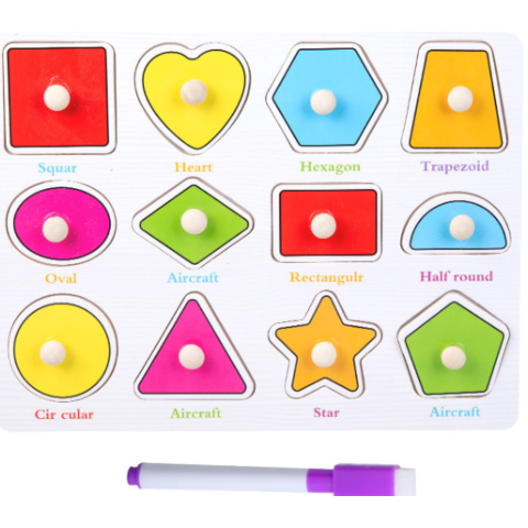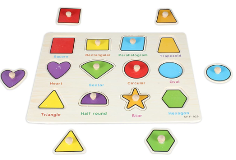 Acest puzzle educativ din lemn îi ajută pe cei mici să învețe formele geometrice într-un mod distractiv și interactiv.