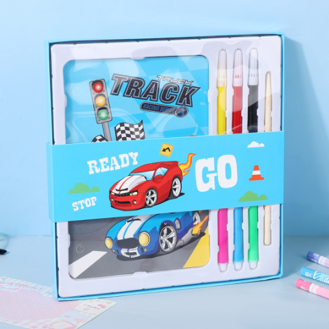Acest set creativ oferă o experiență de colorat interactivă și distractivă pentru micii pasionați de mașini și curse.