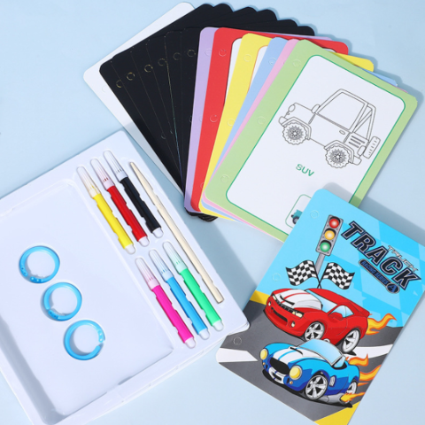 Copiii pot colora paginile ilustrate cu markerele incluse, dezvoltându-și imaginația și îndemânarea.