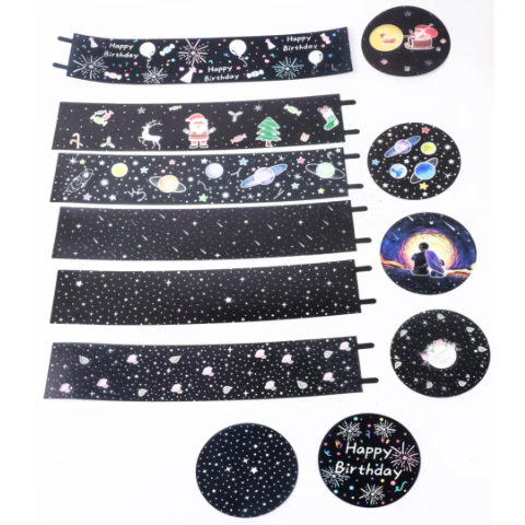 Setul include mai multe modele de proiecție, de la universul cosmic cu planete și rachete la peisaje cu animale prietenoase.