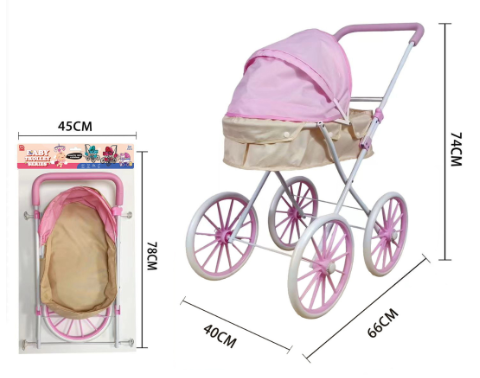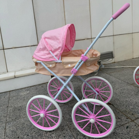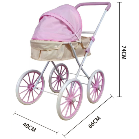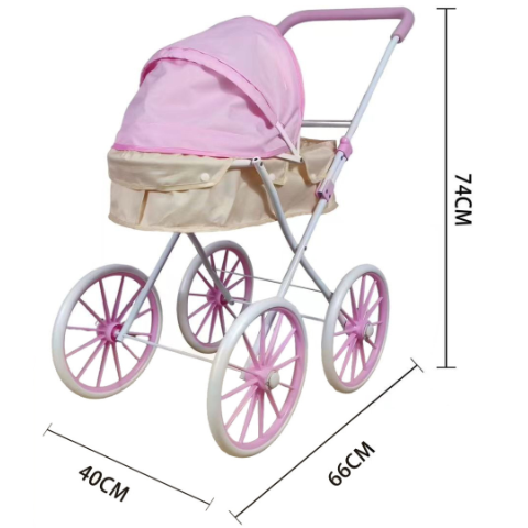 Acest cărucior pentru păpuși impresionează prin designul său retro, combinând detalii elegante cu funcționalitate.