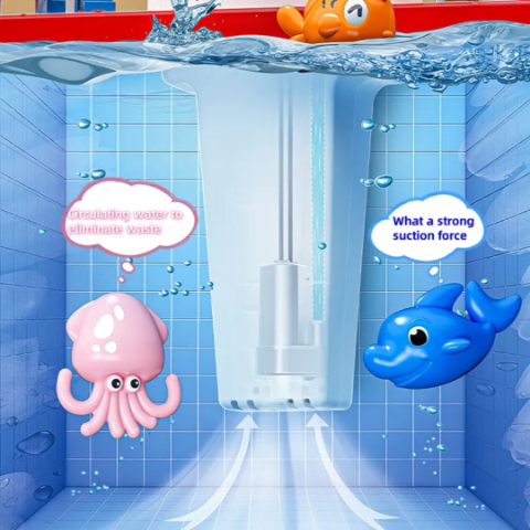 Zona de joacă cu apă adaugă o dimensiune captivantă, fiind echipată cu un sistem de circulație a apei pentru mai multă distracție.