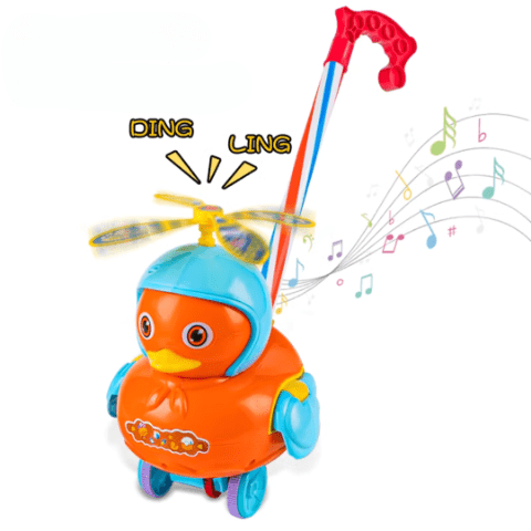 Această rață colorată și interactivă este ideală pentru primii pași ai bebelușului tău, încurajând mișcarea și dezvoltarea motorie.