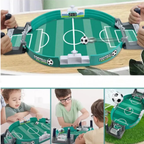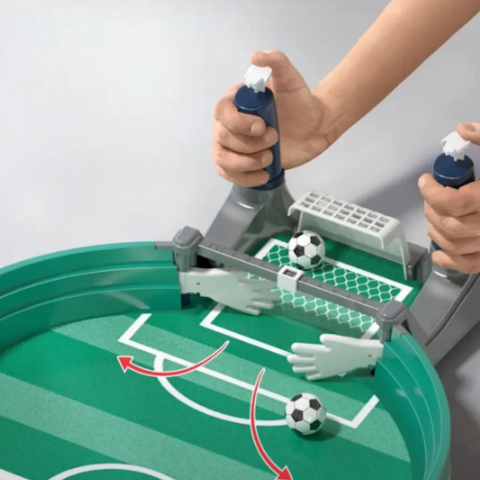 Acest teren interactiv de fotbal de masă oferă distracție garantată pentru doi jucători, antrenând spiritul de competiție și coordonarea.