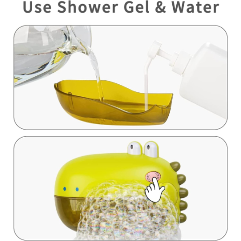 Funcționează cu baterii și se umple ușor cu soluție de săpun, făcând întreaga experiență simplă și convenabilă pentru părinți.