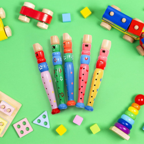 Fiecare fluier emite sunete clare și plăcute, oferind o introducere excelentă în lumea muzicii și dezvoltând simțul ritmului și auzul muzical al copiilor.