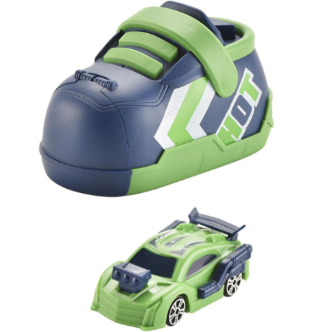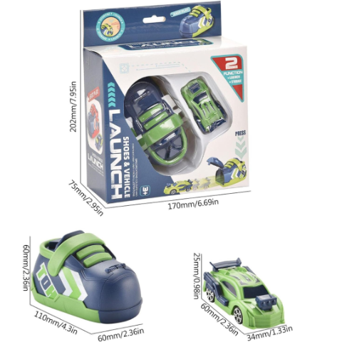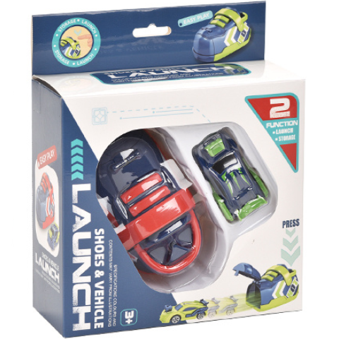 Pachetul conține un pantof lansator și o mașinuță de curse cu detalii sportive, disponibile în două variante de culori atractive.
