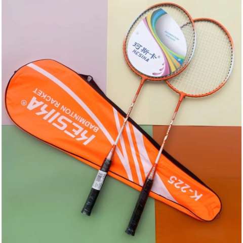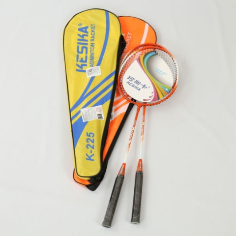 Descoperă un set de badminton versatil și rezistent, compus din două rachete portocalii și o geantă practică de transport, ideal pentru meciuri antrenante oriunde te-ai afla.