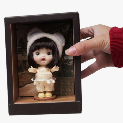 Cu o față luminoasă și detalii fine, păpușa emană delicatețe și gingășie, fiind perfectă pentru jocuri de rol sau ca obiect de colecție.