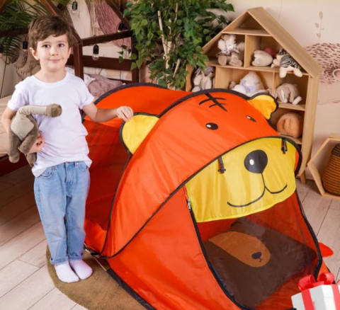 Transformă joaca într-o aventură de neuitat cu acest cort de joacă adorabil, în formă de tigru zâmbitor, perfect pentru interior și exterior.
