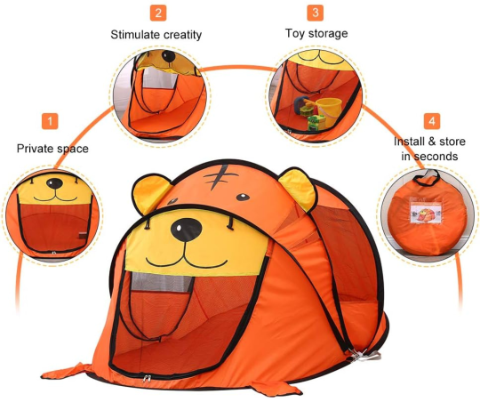 Fie că e amplasat pe plajă, în grădină sau în camera de joacă, acest cort vesel creează un spațiu privat în care copiii pot citi, se pot juca sau relaxa.
