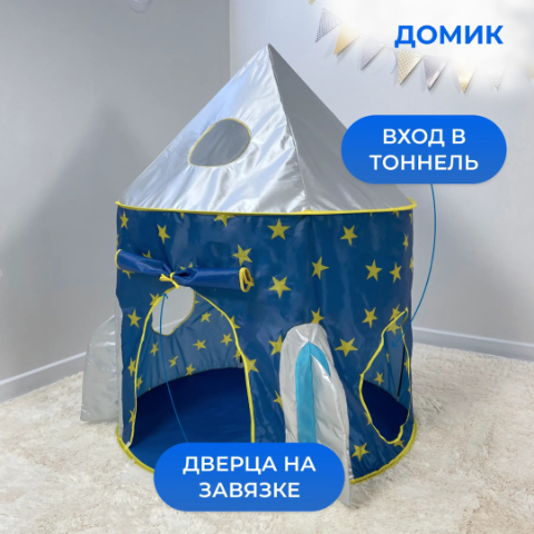 Cortul în formă de turn albastru, cu stele galbene, este perfect pentru a crea o lume de poveste, unde cei mici se pot juca, citi sau relaxa în siguranță.
