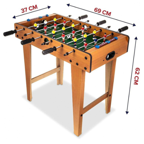 Această masă de fotbal pentru copii aduce toată energia unui meci real în sufrageria ta, cu un design compact și picioare stabile din lemn.