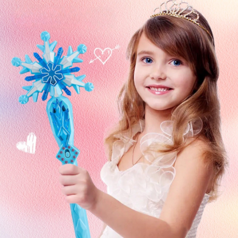 Bagheta magică cu fulg de zăpadă, disponibilă în roz și albastru, atrage imediat atenția prin designul său strălucitor și detaliat, perfect pentru jocuri de rol cu prințese.
