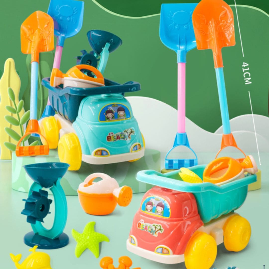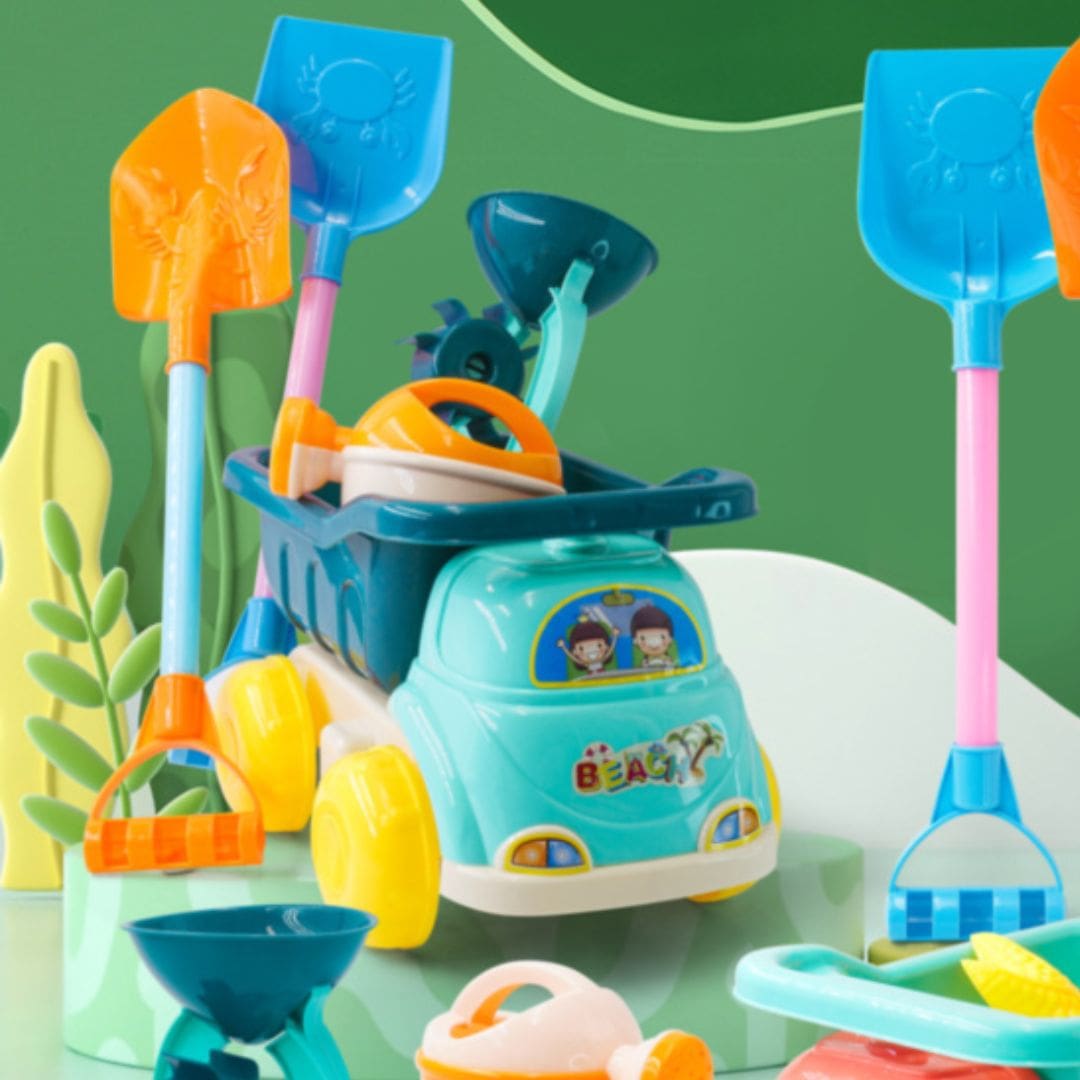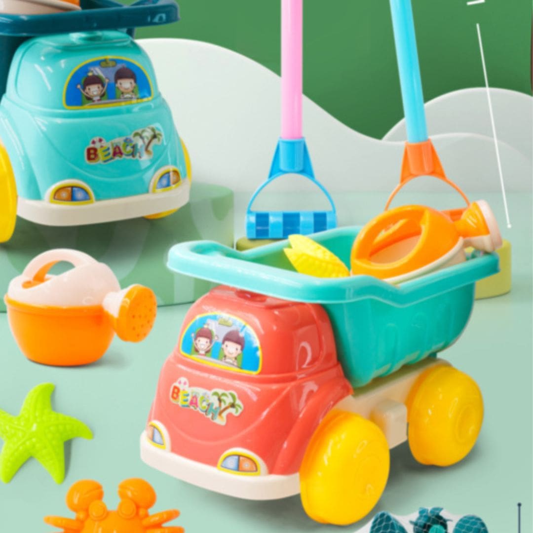 Designul robust permite copiilor să transporte, să descarce și să sape în nisip cu uneltele incluse.