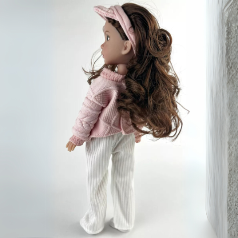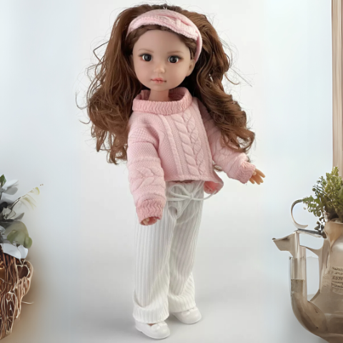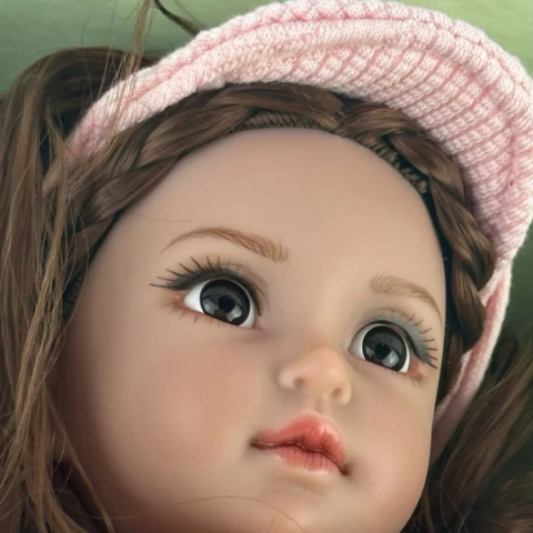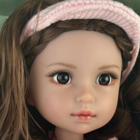Păpușa are un chip fermecător cu trăsături delicate și ochi expresivi, care atrag imediat privirea și trezesc emoții autentice.
