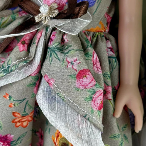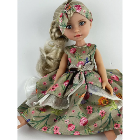 Accesoriul asortat pentru cap subliniază atenția la detalii și transformă păpușa într-o mică domnișoară stilată.