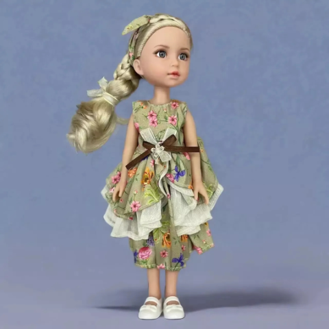 Păpușa Vika cucerește prin privirea sa angelică și părul blond prins într-o coadă împletită ce oferă un aer rafinat și elegant.