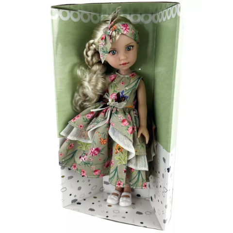 Păpușa este ambalată într-o cutie elegantă, perfectă pentru a fi oferită cadou cu orice ocazie.
