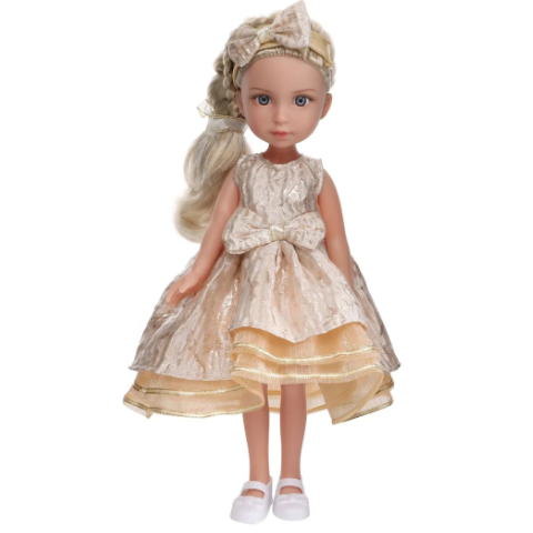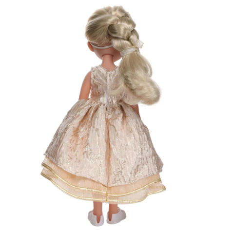Păpușa este ușor de ținut în mână, având o dimensiune de 35 cm, potrivită pentru joacă de zi cu zi.